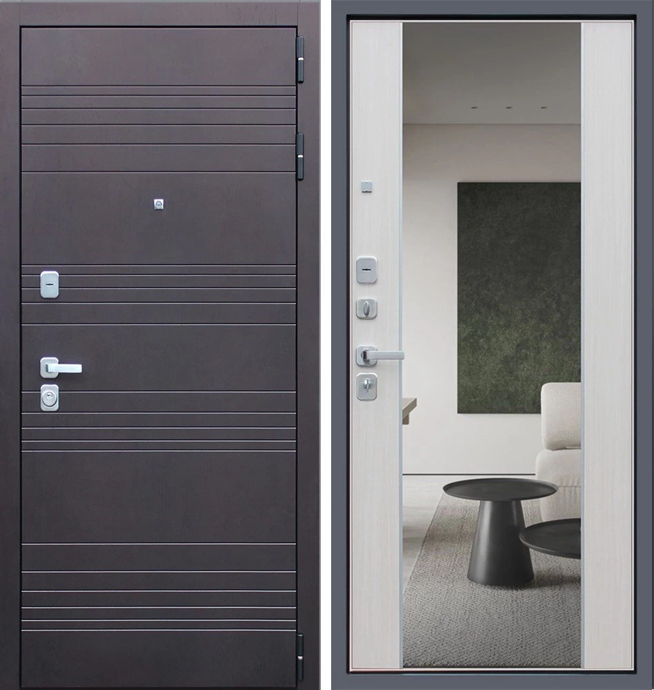 Надежная входная Дверь Дуэт с зеркалом премиум класса по цене 46 757 руб. Большая толщина стали защитит от проникновения в ваш дом, квартиру или коттедж. Используется очень качественная фурнитура: замки, цилиндры, ручки, защелки. Покрытие и отделка двери изготовлено под внимательным контролем производителя. Дверь имеет долгий срок службы и гарантию.